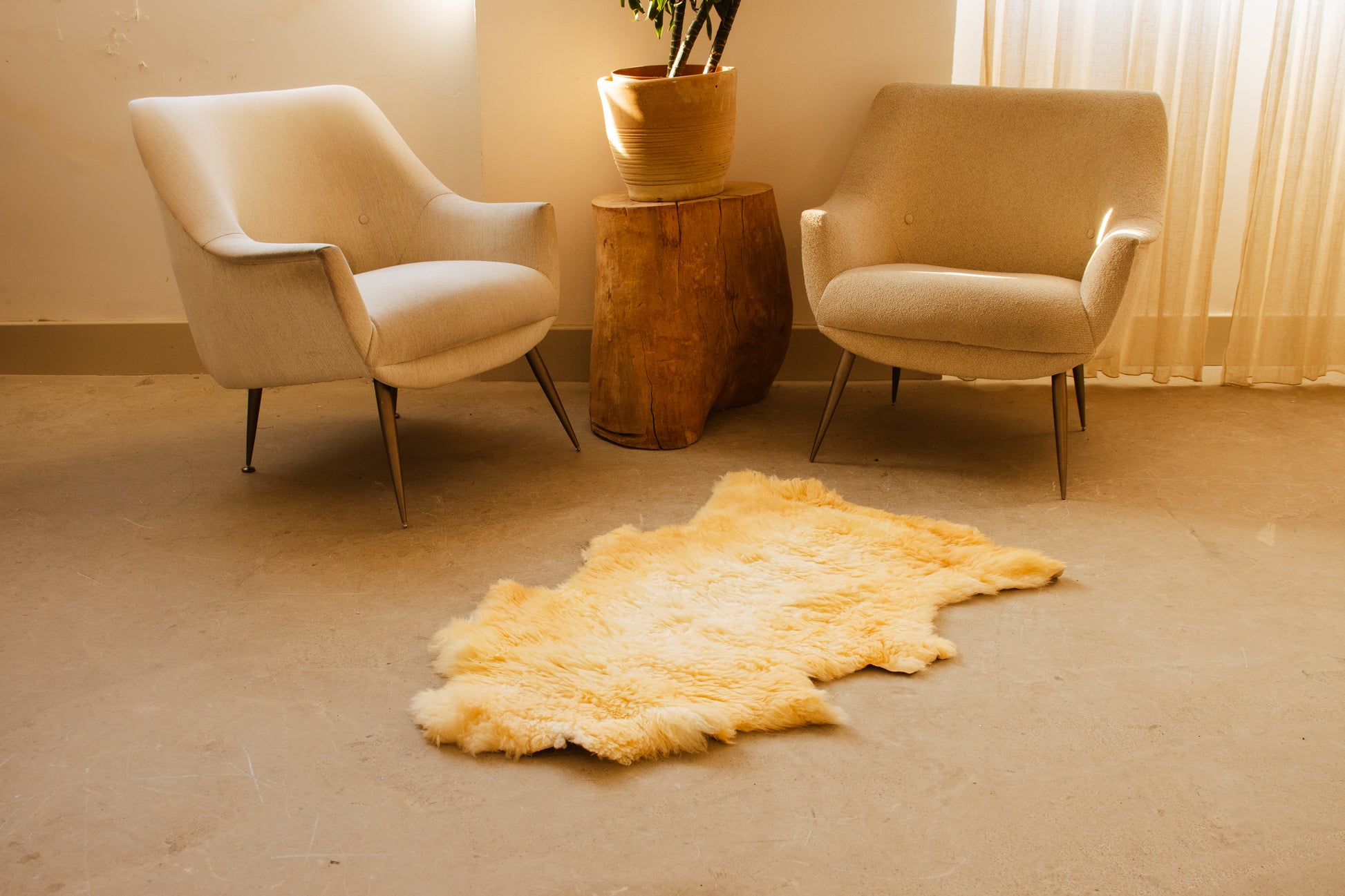 A generously proportioned Anatolian sheepskin hide in a soft county-cream tone with dense, plush wool and a smooth natural finish. Its elongated form and even pile create a calm, grounded presence — ideal for softening wood, stone or minimalist interiors.